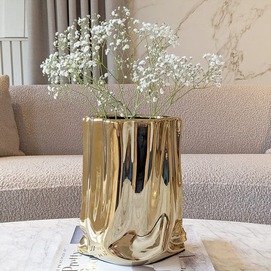 Vega Paper Bag Style Gold Ceramic Vase