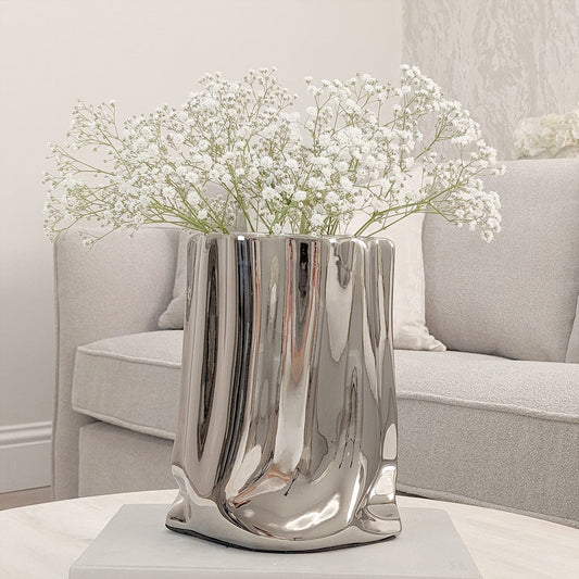 Vega Paper Bag Style Silver Ceramic Vase